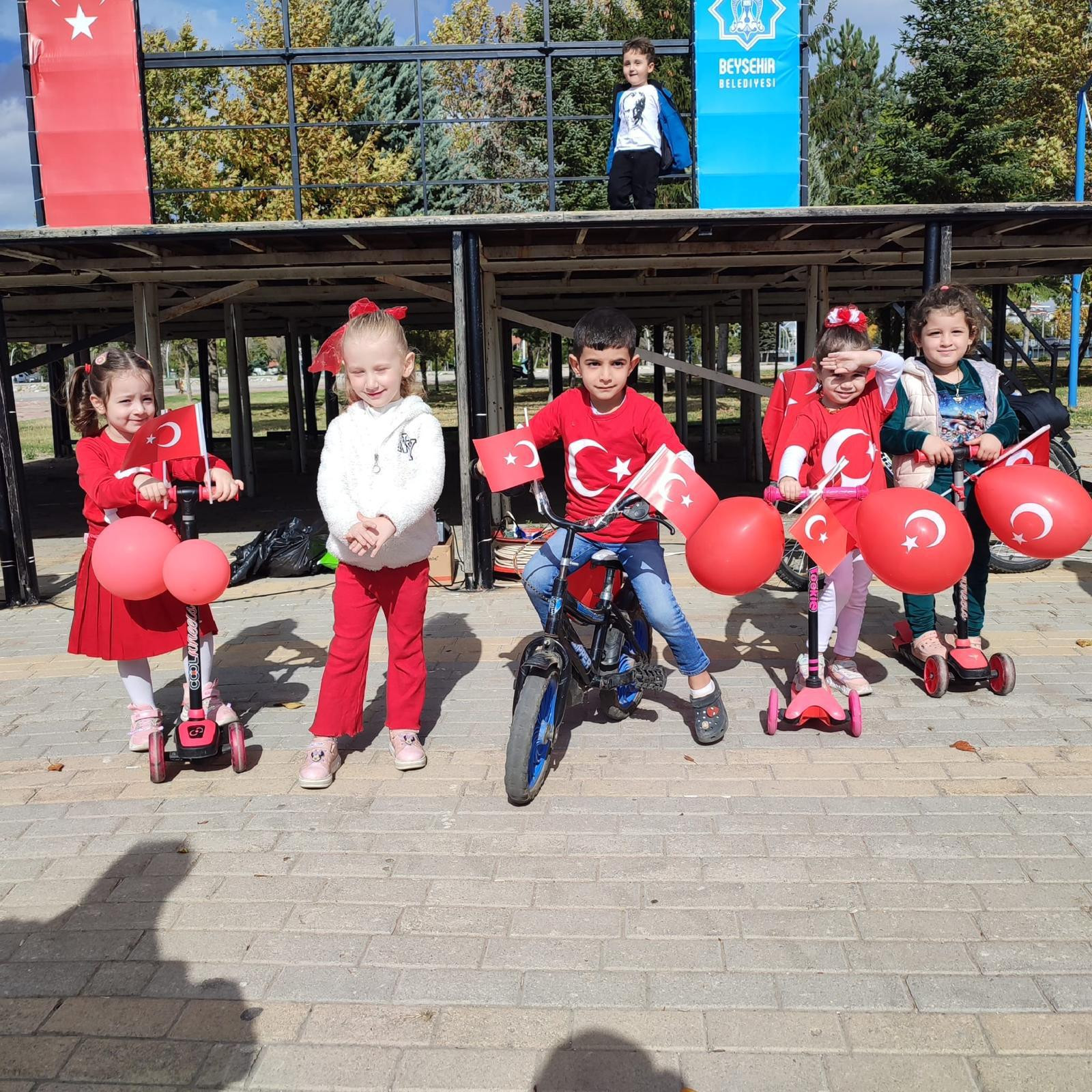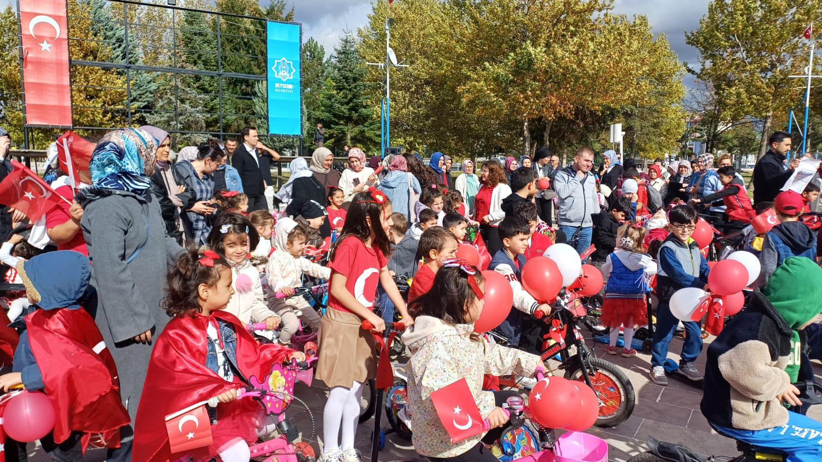 Göl kıyısındaki festival alanında 29 Ekim Cumhuriyet Bayramı kutlamaları kapsamında Beyşehir Cumhuriyet Anaokulu ile Beyşehir Bisiklet Topluluğu işbirliğinde geleneksel bisiklet korteji düzenlendi.