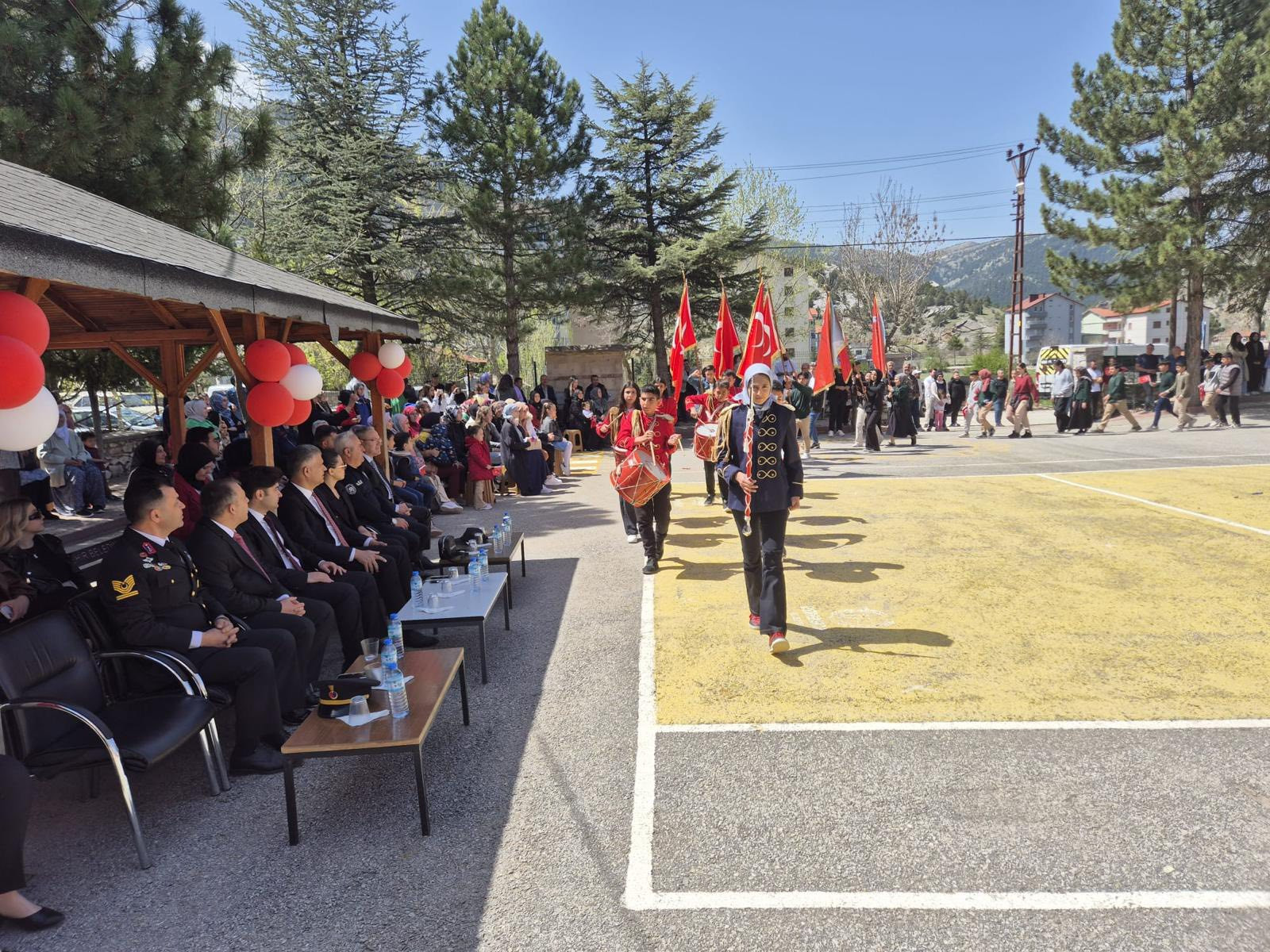 Konuşmaların ardından protokol ilçe halkının ve çocukların bayramını tebrik etti, sonrasında öğrencilerin sergilediği gösteriler izlendi. Düzenlenen yarışmalarda birinci olan öğrencilere hediyeleri de verildi.