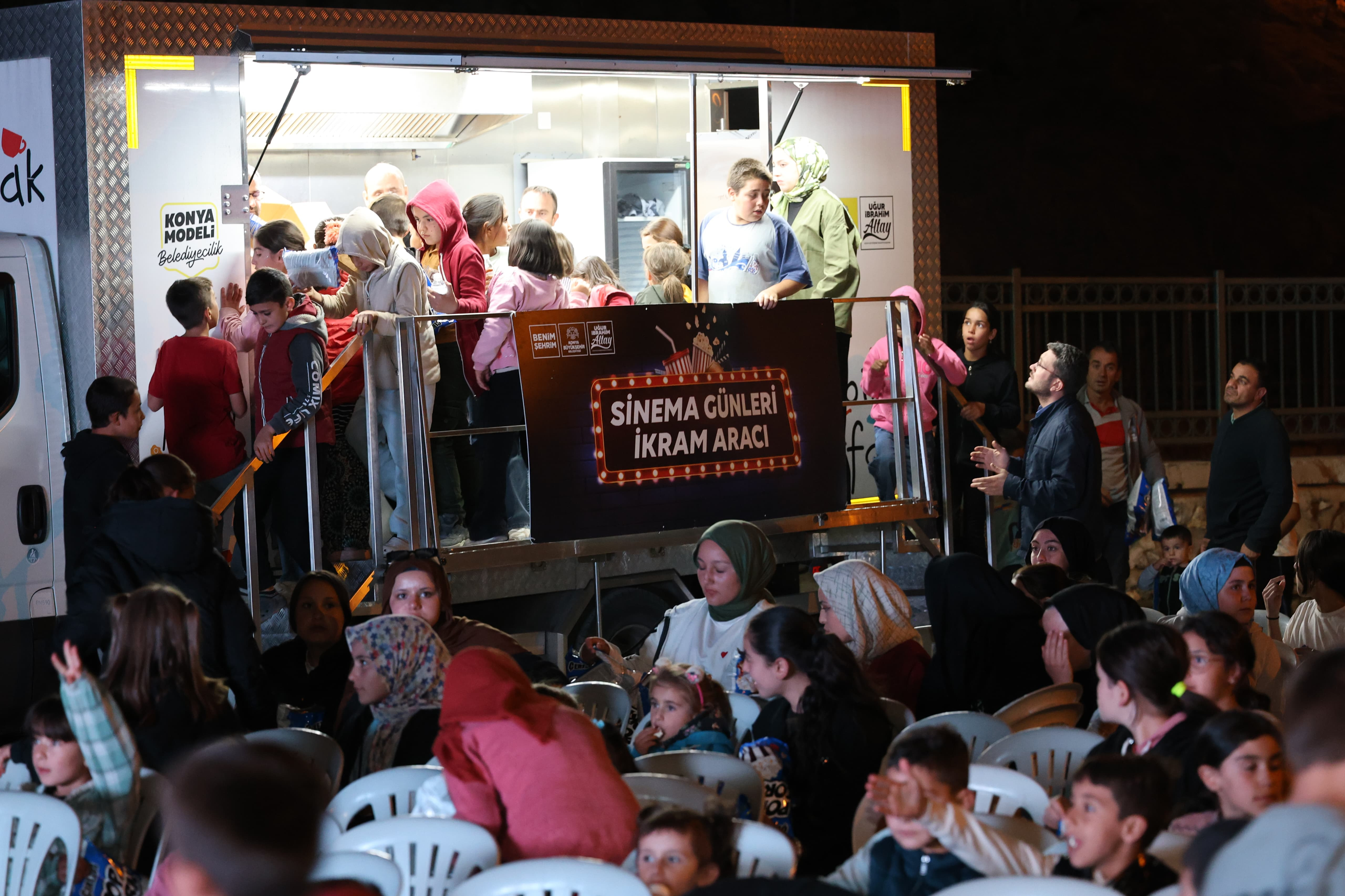 Konya’nın merkez dışındaki mahallelerinde sosyal ve kültürel hayatı canlandırmak amacıyla başlattıkları Sinema Günleri etkinliğini başarıyla tamamladıklarını kaydeden Başkan Altay, “Sinema TIRI’nda gösterimi yapılan Cep Herkülü: Naim Süleymanoğlu filmini aileleriyle birlikte izleyen çocuklarımız hem açık havada sinema keyfi yaşadı hem nostaljik bir akşam geçirdi.