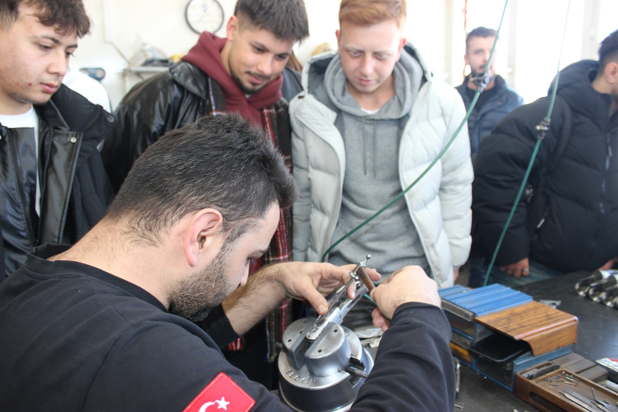 Huğlu Av Tüfekleri Kooperatifi’nin PCP silah üretim tesisini gezen öğrencilere, kooperatifin kuruluş süreci, üretim yapısı ve faaliyet alanları hakkında bilgilendirme yapıldı. Ayrıca el sanatları, üretim ve ürün tanıtım birimleri tanıtıldı.