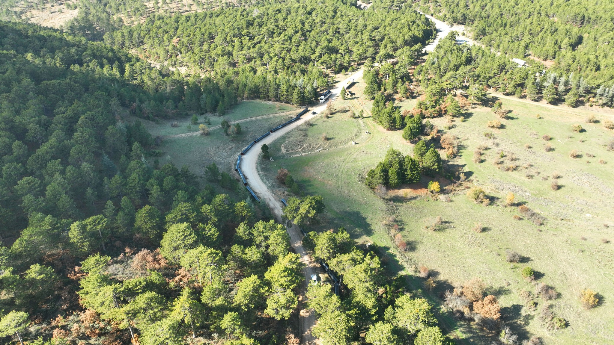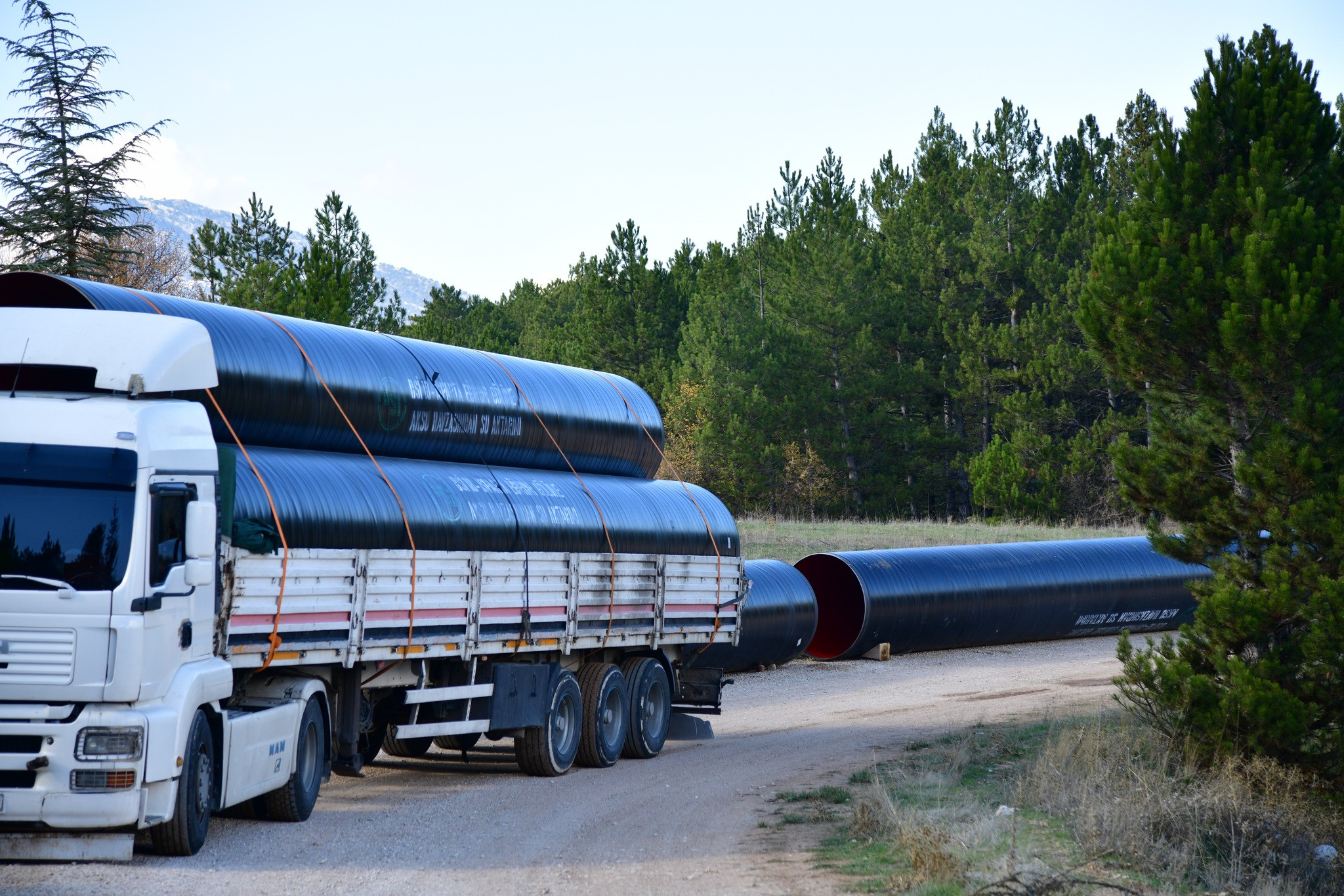 DSİ Isparta 18.Bölge Müdürlüğü tarafından yapılan paylaşımda, Aksu Havzası’ndan yıllık 42 milyon metreküp su aktarımı yapılmasını sağlayacak olan bölgede sahaya indirilen dev boruların görselleri yer aldı.