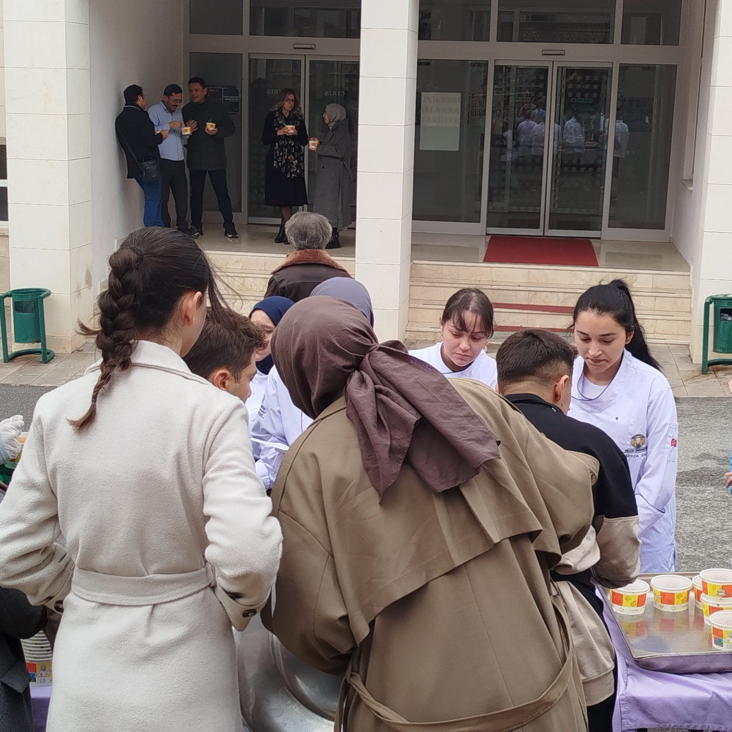 Konya mutfağının geleneksel lezzetlerinden biri olan bamya çorbası; fakülte öğrencileri, kampüs genelindeki akademik ve idari personel ile misafirlere ücretsiz olarak dağıtıldı. Etkinlikte ayrıca “Tatlı yiyelim, tatlı konuşalım” sözünü hatırlatan anlamlı bir dokunuşla keşkül tatlısı da ikram edildi.