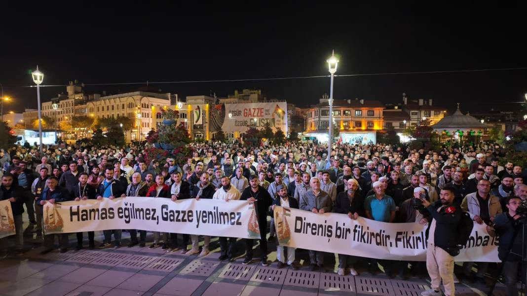 Konya halkının duyarlılığına dikkat çekilen açıklamalarda, “Gazze’deki kardeşlerimizin yanında olduğumuzu her platformda haykırmaya devam edeceğiz” denildi.
