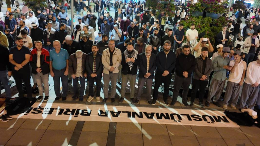 Gazze’ye insani yardım götüren Sumud Filosu’na yönelik İsrail saldırısı sonrası Konya’da vatandaşlar bir araya geldi. Mevlana Meydanı’nda toplanan vatandaşlar, Filistin halkına destek için hacet namazı kıldı ve hep birlikte kunut duaları okudu.