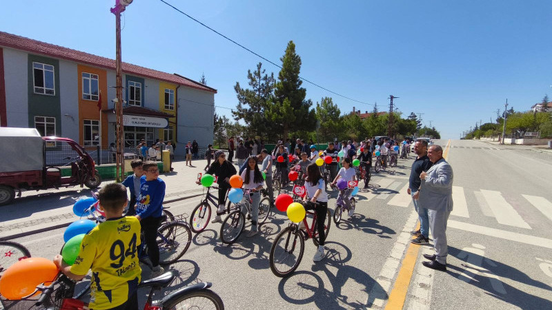 Yunus Emre Ortaokulu önünden başlayan turda öğrenciler öğretmenleri eşliğinde çarşı merkezinde pedal çevirerek başlangıç noktasına dönüş yaptı.