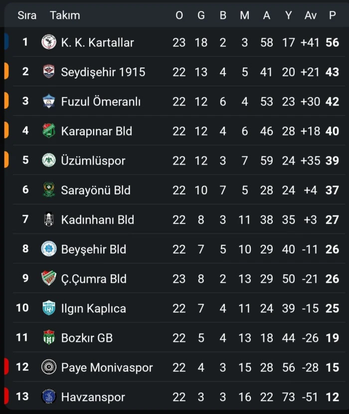 Öte yandan, play-off yarışından daha önce kopan Beyşehir Belediyespor haftayı maç yapmadan geçerken, ligde küme düşmesi kesinleşen ilk takım Öntur Havzanspor oldu.