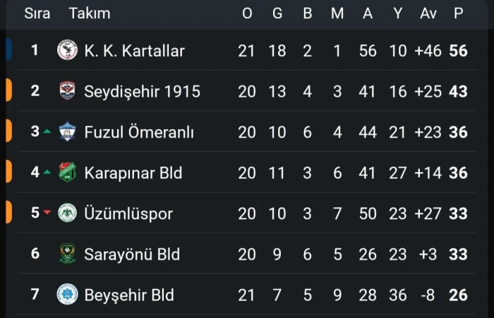 Tormet Üzümlüspor : Beyşehir Belediyespor, Ç.Çumra Belediyespor(D), Bozkır G.Birliği, Ilgın Kaplıca Belediyespor (D)