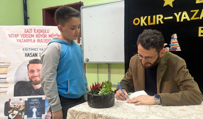 Programın sonunda öğrenciler, büyük ilgiyle okudukları kitapları yazar Hasan Uzun’a imzalattı. Etkinlik, öğrenciler için unutulmaz bir anı olurken, kitap sevgisinin pekişmesine de katkı sağladı.