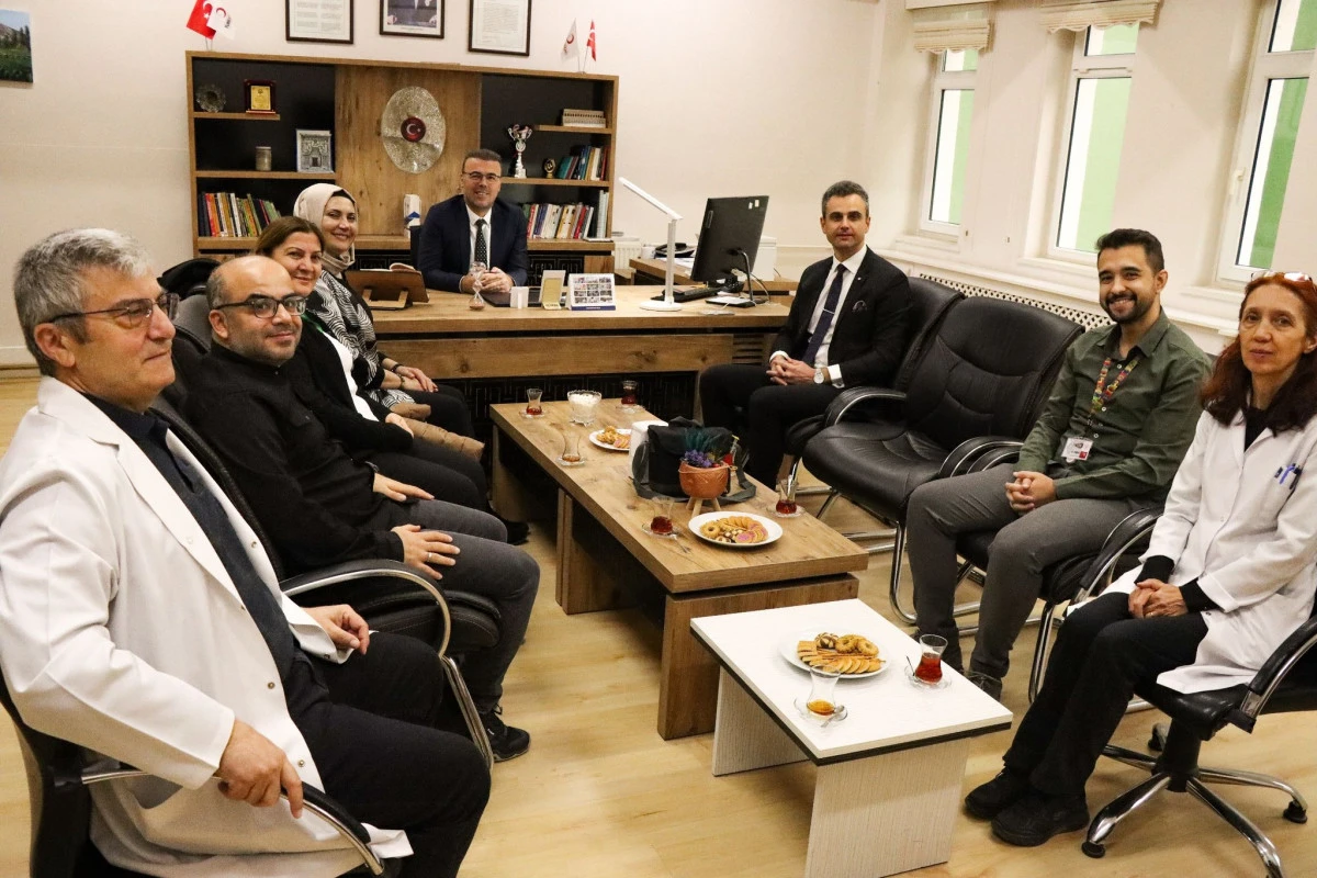 Başhekim Dr. Kutay Güven’e ziyarette Sağlık Bakım Hizmetleri Müdürü Gülşen Parlakkaya ve Müdür Yardımcısı İlknur Gülol ile beraberindeki bazı sağlık çalışanları da eşlik etti.