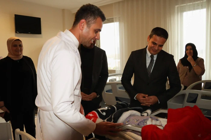 Ziyaret kapsamında, doğum sürecinde titizlik ve özveriyle görev yapan Uzm. Dr. Arif Can Özsipahi liderliğindeki Doğumhane ile Kadın Hastalıkları ve Doğum Servisi ekibine emeklerinden dolayı teşekkür edildi.