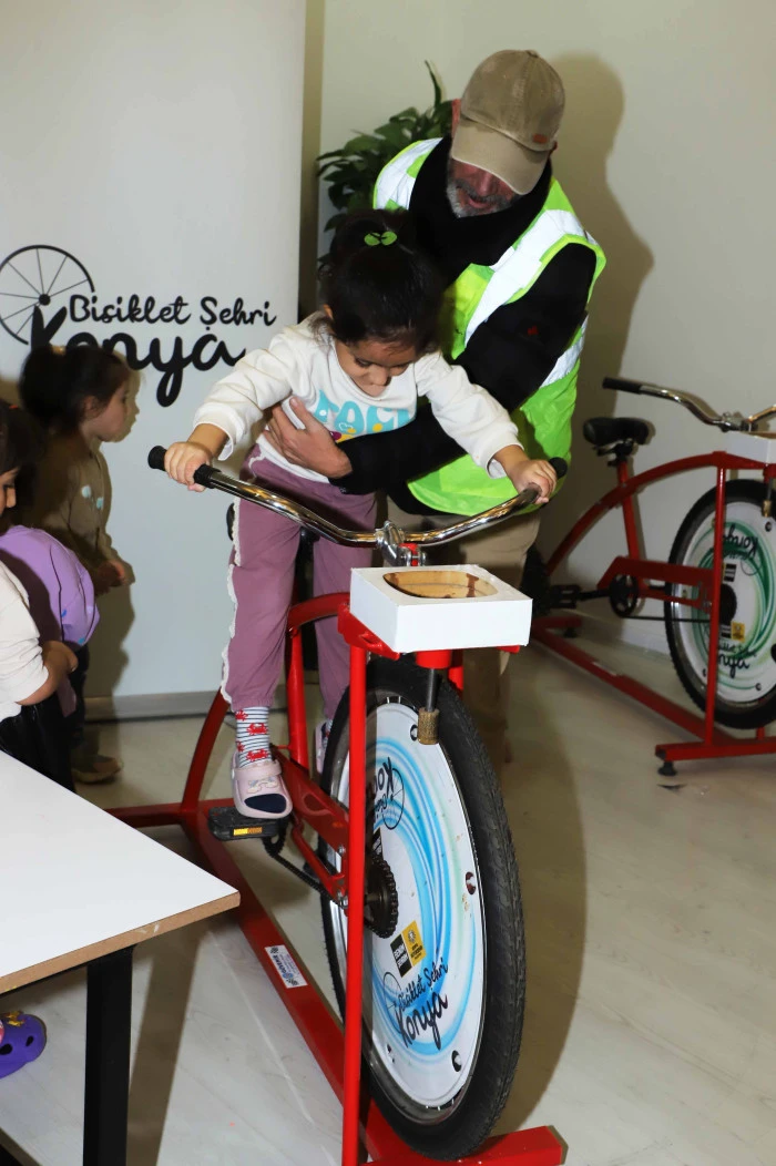 İl Milli Eğitim Müdürlüğü iş birliğiyle anaokullarında hayata geçirilen program kapsamında öğrenciler; bisiklet kullanmanın faydaları hakkında bilgilendiriliyor, bisiklet parçalarını tanıyor, Bisiklet Şehri Konya boyama kitabı etkinliklerine katılıyor.