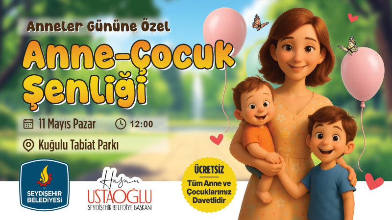 Seydişehir Belediyesi, Anneler Günü dolayısıyla anlamlı bir organizasyona imza atıyor. "Anne-Çocuk Şenliği", 11 Mayıs Pazar günü saat 12.00'de Kuğulu Tabiat Parkı'nda gerçekleştirilecek.