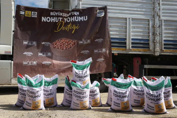 Konya Büyükşehir Belediyesi, kuraklıkla mücadele kapsamında az su isteyen ve yüksek verim sağlayan ürünlerin yaygınlaştırılması amacıyla çiftçilere nohut tohumu desteğinde bulundu.
