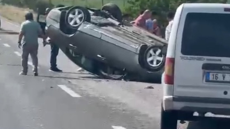 Seyir halindeki otomobil sürücünün direksiyon hakimiyetini kaybetmesi sonucu devrilerek kara yolu üzerine ters döndü. Kazada sürücü ve araç içerisindeki 1 kişi yaralandı.