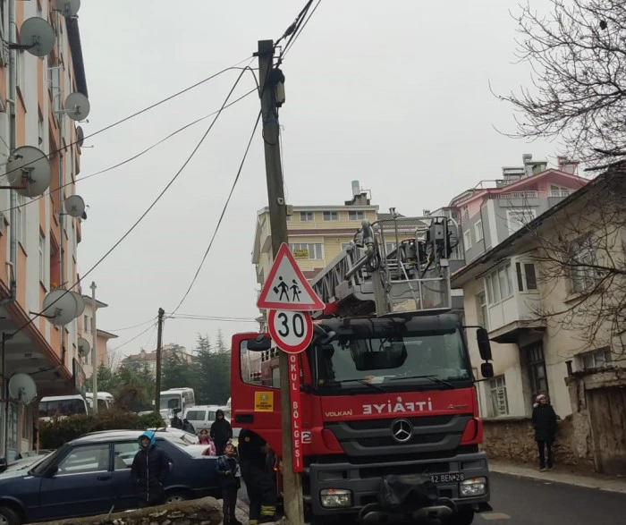Hacıakif Mahallesi’nde bir sokakta kedinin direkte uzun süre kaldığını ve inemediğini çıkardığı sesten fark eden vatandaşlar durumu itfaiyeye bildirdi.