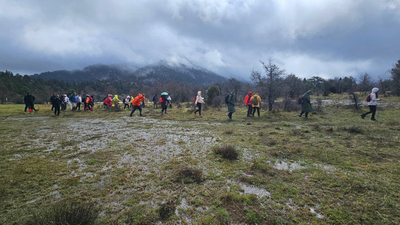 Yağmur ve çamurlu arazi yolları nedeniyle zaman zaman zor anlar yaşayan doğa severlerden bazıları şemsiye açtı, bazıları ise yanlarında getirdikleri yağmurluklarını giydi. Yağmur altında yürüyüş keyfi iliklere kadar yaşandı.