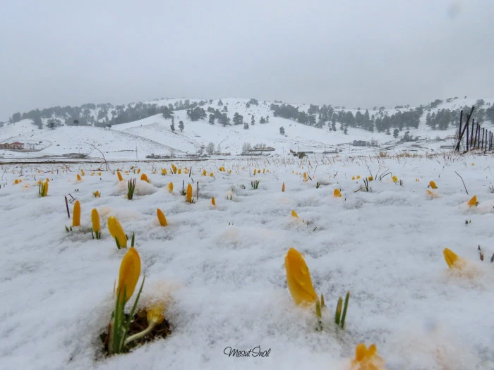 Dağlık alanlar ve yaylalarda haftalardır süren çalışmalarında, ilkbaharın gelişiyle birlikte açan rengarenk çiçekleri kadrajına alan İnal, karla kaplı alanlarda filizlenen nadide türleri de ölümsüzleştirdi.