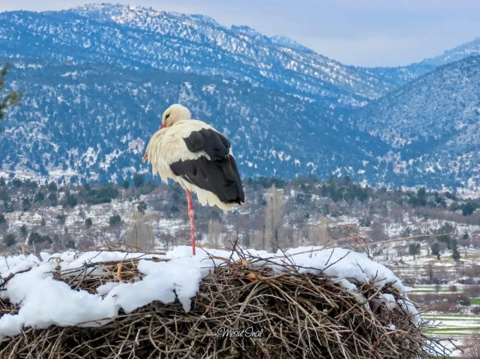 Öte yandan, doğa gezileri sırasında Leylekler Vadisi’ni de ziyaret eden İnal, baharın habercisi göçmen leyleklerin kar yağışı sonrası ortaya çıkan görsel şölenini de görüntüleyerek takipçileriyle paylaştı.