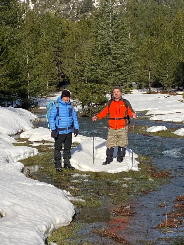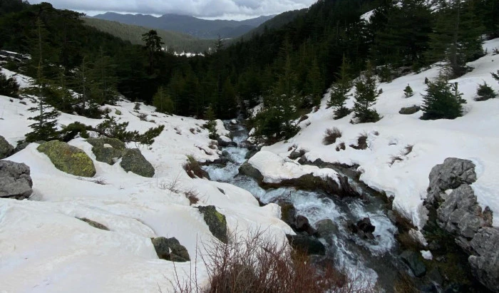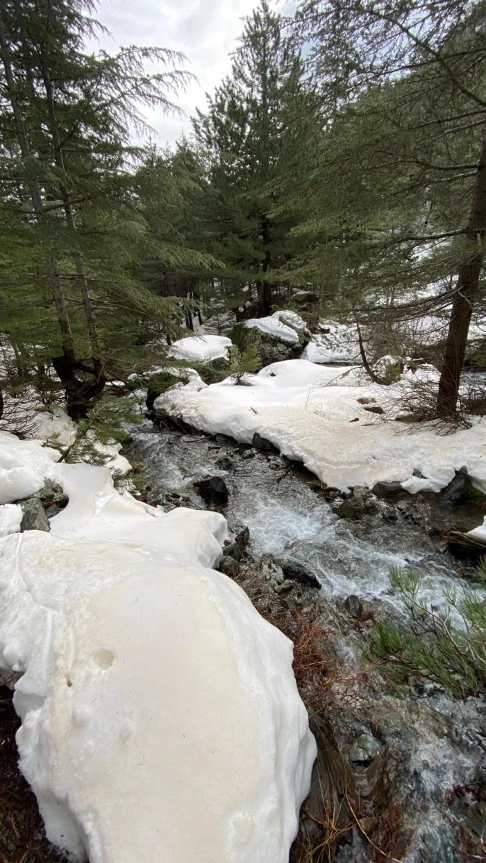 Beyaz örtüyle kaplanan yaylada, yağmur ve eriyen kar sularıyla canlanan su kaynakları çevresinde yürüyüş yapan doğaseverler, kartpostallık görüntüler yakaladı.