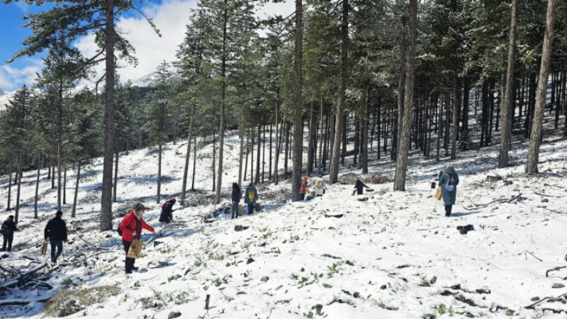 Doğa severler, Beyşehir’de düzenlenen doğa yürüyüşü etkinliğinde şehit polislerimiz için toprağa tohum serpti.