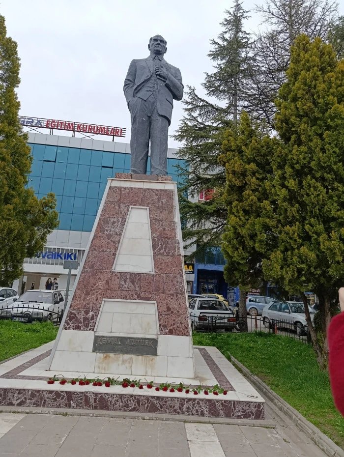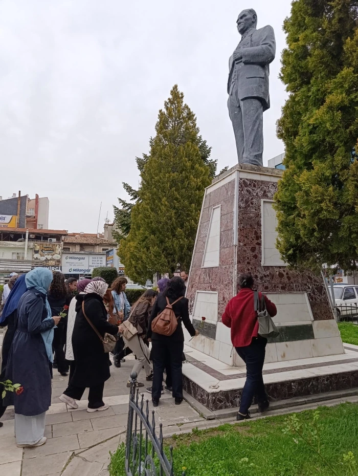 Atatürk büstü önüne karanfil bırakan öğretmenler, saygı duruşunda bulundu. Programda duygusal anlar yaşandı.