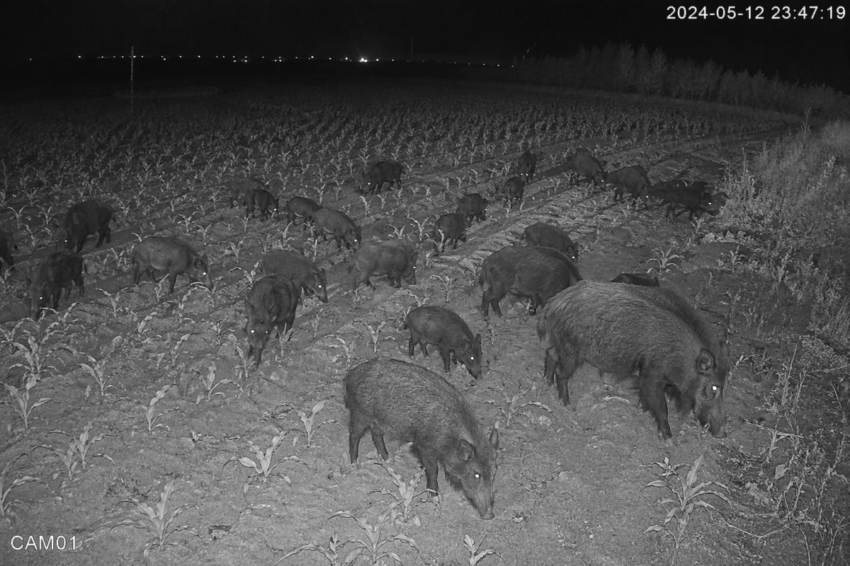 İslik Parseller Mevkisi’nde kalabalık halde dolaşan bir domuz sürüsü, geçtiğimiz Pazar günü ve dün farklı saatlerde güvenlik kameraları tarafından görüntülendi. Görüntülerde sürünün rahatlıkla tarım alanlarına girdiği ve bölgede kontrolsüz şekilde dolaştığı görüldü.