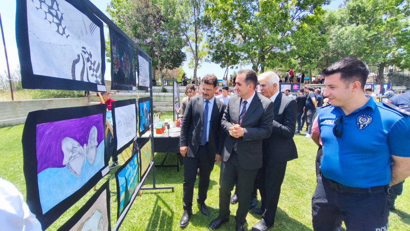 Okul bahçesinde açılan sergide öğrencilerin yıl boyunca hazırladığı çalışmalar vatandaşların beğenisine sunuldu.