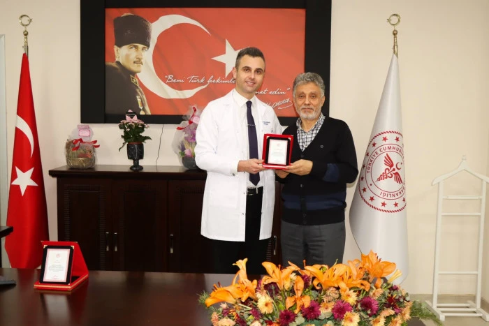 Sağlık çalışanlarına, kuruma sundukları değerli katkılar dolayısıyla Başhekim Dr. Kutay Güven tarafından plaket takdim edildi.