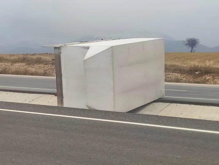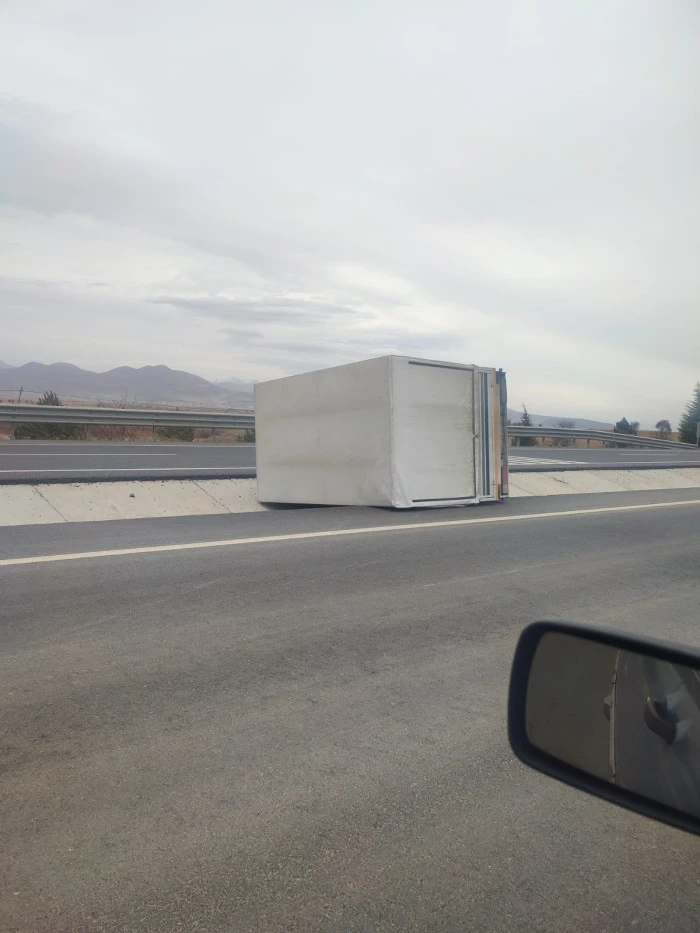 Edinilen bilgilere göre olay, Seydişehir– Beyşehir karayolunun 16’ncı kilometresinde meydana geldi. Şiddetli rüzgâra maruz kalan kamyonun kasası, bağlı olduğu şasiden koparak yol ortasına savruldu