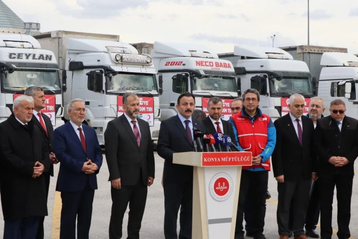 Konya’dan Gazze’ye gönderilmek üzere hazırlanan 15 tır insani yardım malzemesi, düzenlenen törenle dualar eşliğinde yola çıktı. Uğurlama programına Diyanet İşleri Başkan Yardımcısı Prof. Dr. Ahmet İshak Demir de katıldı.