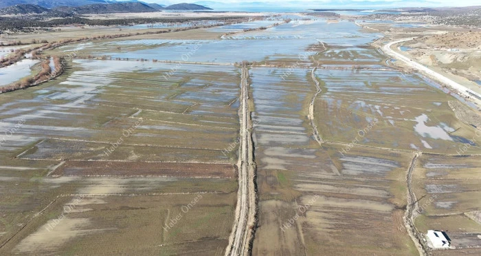 Gembos Derivasyon İletim Kanalı’ndan taşan sular, güzergâhı üzerindeki ekili alanları ve meraları sular altında bıraktı. Bölgede adeta gölü andıran manzaralar ortaya çıktı.