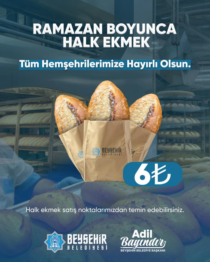 Ramazan uygulamasını daha önce kamuoyuna duyuran Beyşehir Belediye Başkanı Adil Bayındır ise mübarek ay boyunca halk ekmeğin 6 TL’den satışa sunulacağını ifade etti. Bayındır, amaçlarının her haneye dokunmak ve Ramazan’ın bereketini vatandaşlarla paylaşmak olduğunu kaydetti.