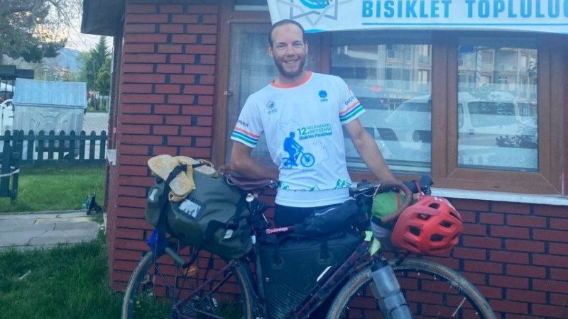 Fransa'dan bisikletiyle Avrupa turuna çıkan Paul Prat ülke ülke geziyor.