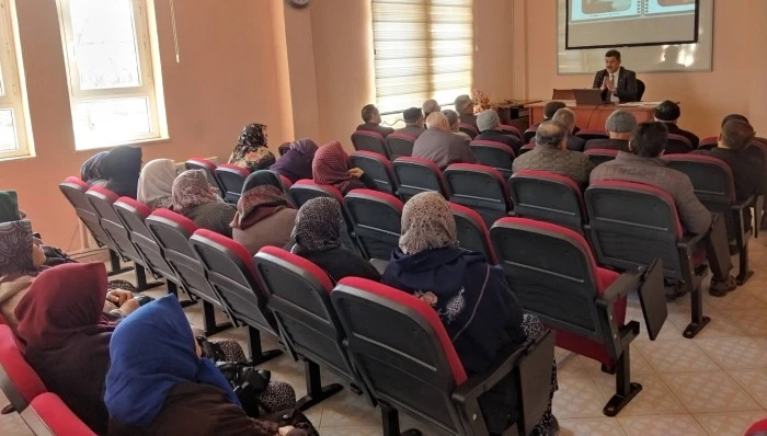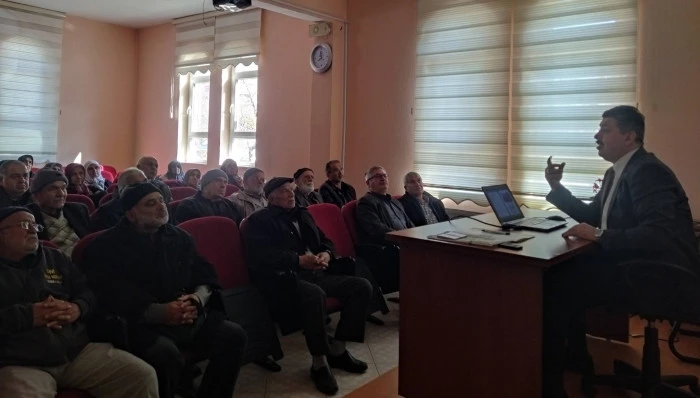 İlçe Müftülüğü toplantı salonunda gerçekleştirilen seminerde, Müftü Ahmet Kaçar tarafından hac ibadetine dair kapsamlı bilgiler verildi.