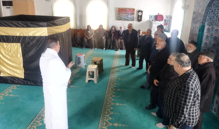 Seminerin bir camideki uygulama bölümünde ise adaylar, kutsal topraklara gitmeden önce hazırlık amacıyla Kâbe maketi etrafında tavaf yapmayı öğrendi.