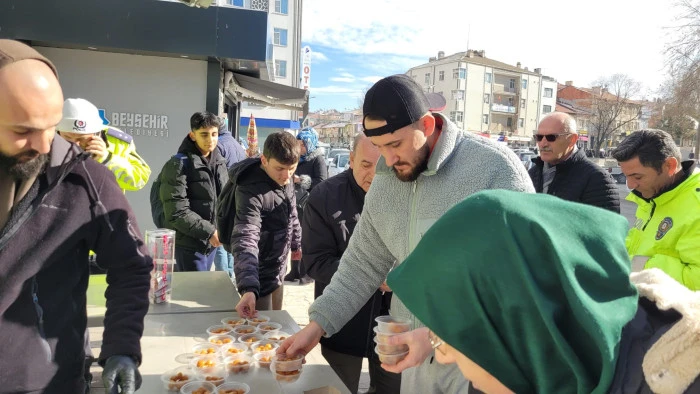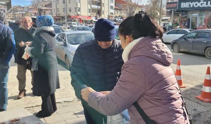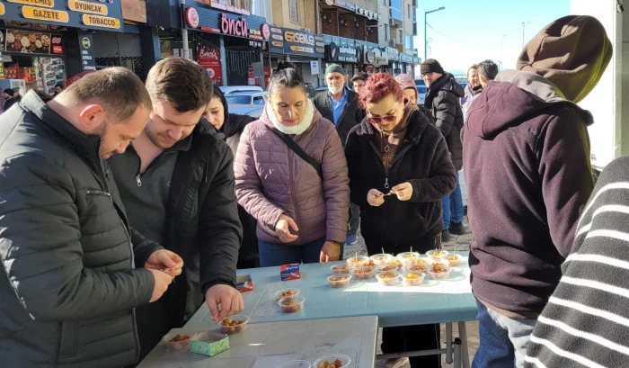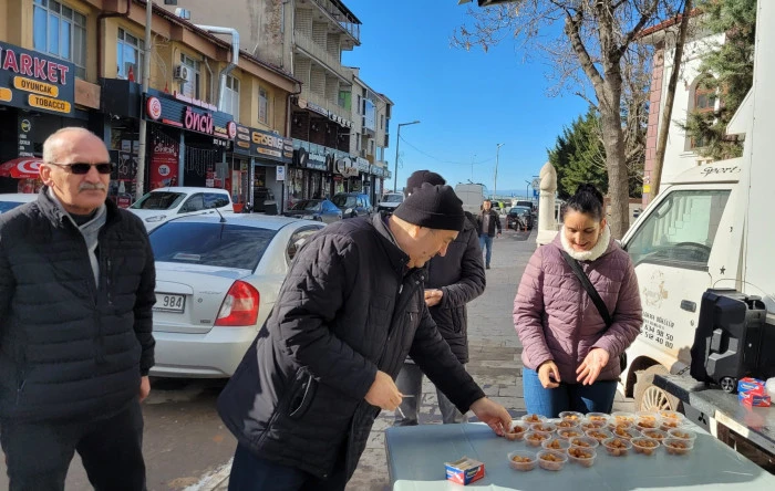 Dernek bürosu önünde, Atatürk Caddesi üzerinde gerçekleştirilen programda Kur’an-ı Kerim tilaveti ve seslendirilen ilahilerin ardından vatandaşlara lokma ikramında bulunuldu.