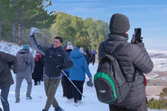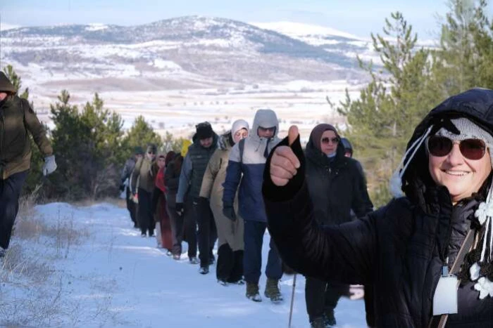 Kış mevsiminin doğaya kattığı görsel şölenin eşlik ettiği etkinlikte katılımcılar, karla kaplı patikalarda yürüyerek hem spor yaptı hem de doğayla iç içe keyifli vakit geçirdi. Tertemiz dağ havasında gerçekleştirilen yürüyüş, katılımcılara sağlıklı yaşam ve stres atma imkânı sundu.