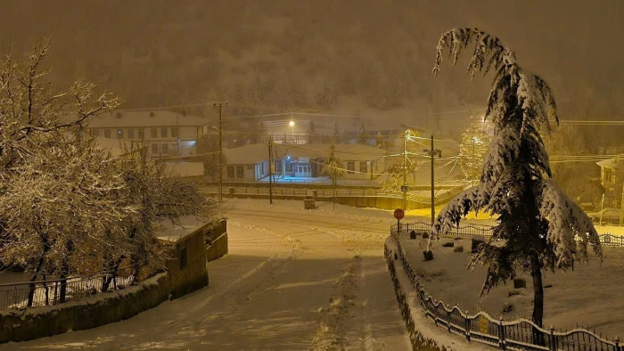Yağmurla başlayan yağış, hava sıcaklıklarının düşmesiyle birlikte Derbent ilçesinde kara dönüştü.