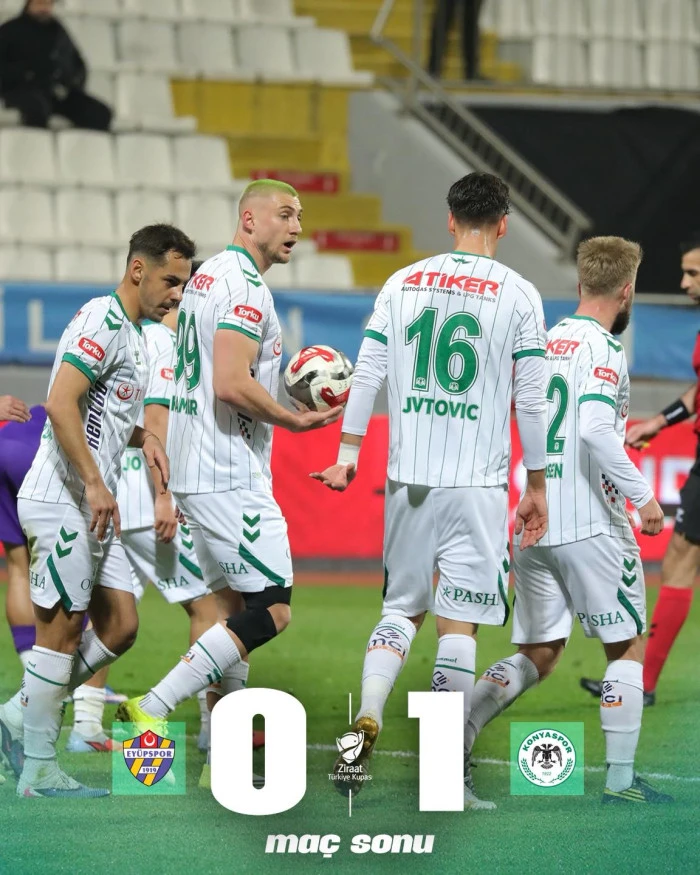Konyaspor, Ziraat Türkiye Kupası B Grubu’nun son haftasında deplasmanda karşılaştığı Eyüpspor’u 1-0 mağlup ederek çeyrek finale yükseldi.