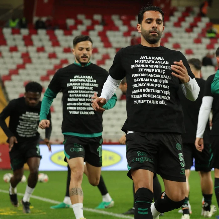 Isınmada Duygusal Anlar Antalya Stadyumu’nda gerçekleştirilen ısınma bölümünde yeşil-beyazlı futbolcular, Kahramanmaraş’ta yaşanan saldırıda hayatını kaybeden öğretmen Ayla Kara ve öğrencilerinin isimlerinin yer aldığı tişörtlerle sahaya çıktı. Tribünlerden Destek Geldi Futbolcuların bu anlamlı hareketi tribünlerdeki taraftarlar tarafından alkışlarla karşılandı. Karşılaşma öncesinde statta duygusal anlar yaşandı. Toplumsal Duyarlılık Vurgusu Konyaspor’un sahaya bu şekilde çıkması, sporun yalnızca rekabetten ibaret olmadığını bir kez daha gösterirken, yaşanan acıya dikkat çekilmesi açısından da önemli bir mesaj olarak değerlendirildi.