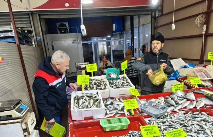 Ekipler, tezgâhlarda bulunan balıkların boy ölçümlerini yaparak yasal sınırlara uyulup uyulmadığını kontrol etti.