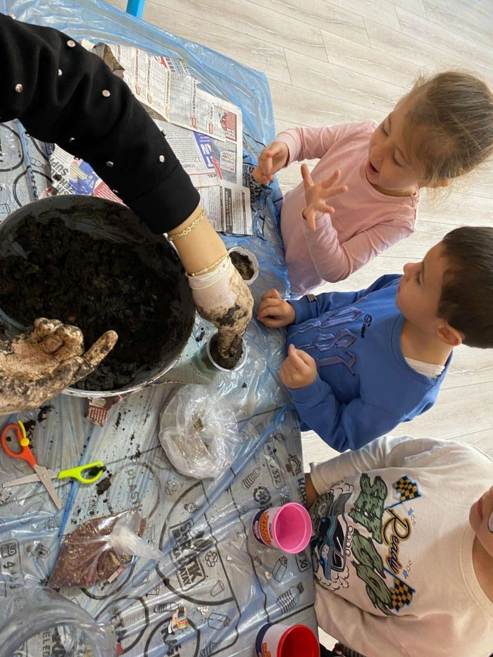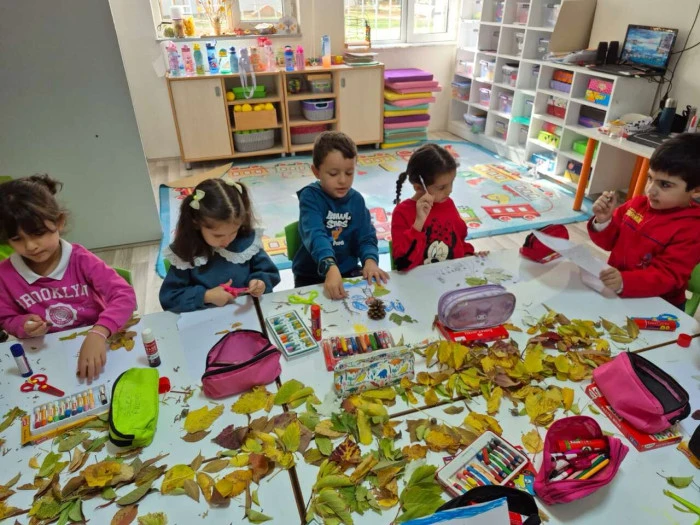 Doğal materyallerle yapılan çalışmalar sayesinde öğrencilerin çevre farkındalığı, iş birliği, paylaşma ve sorumluluk bilinci destekleniyor.