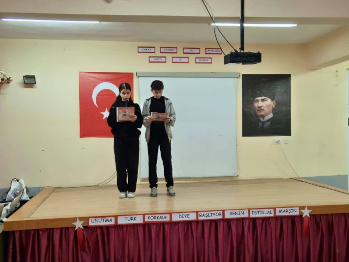Saygı duruşu ve İstiklal Marşı’nın okunmasıyla başlayan programda günün anlam ve önemini belirten konuşmalar yapıldı. Öğrencilerin şiir dinletileri ve Mehmet Akif Ersoy’un hayatını anlatan video gösterimi ilgiyle takip edildi.