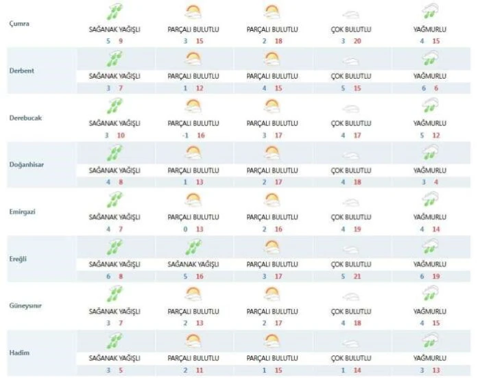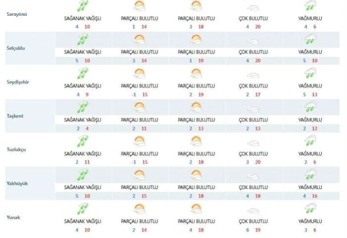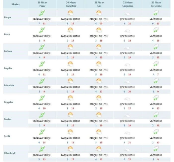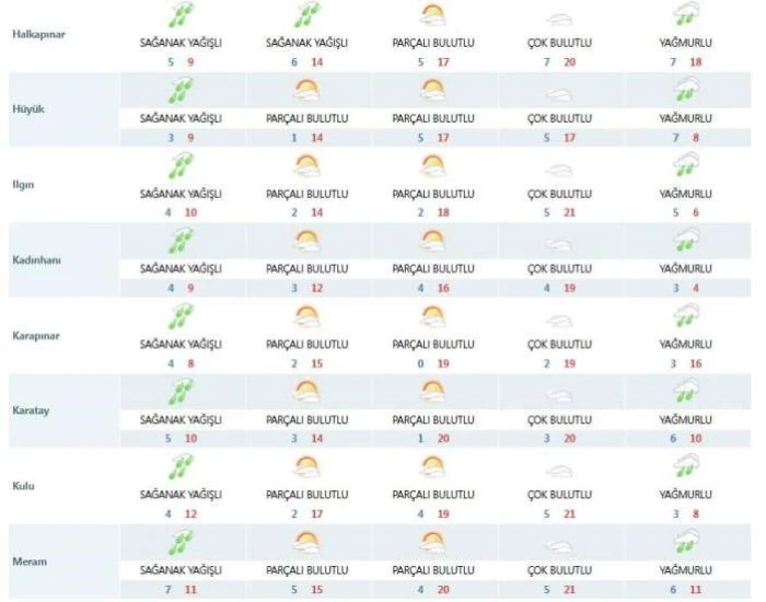 Konya genelinde ölçülen diğer yağış miktarları ise şöyle sıralandı:
