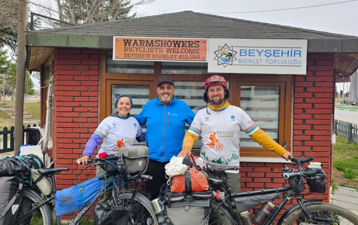 Konya’nın Beyşehir ilçesi, dünya turuna bisikletleriyle çıkan uluslararası bir aşk hikâyesine ev sahipliği yaptı.