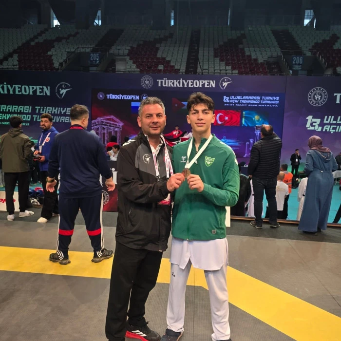 Turnuvada Milli takım antrenörlüğü görevi verilen antrenör Ahmet Sevinç’in oğlu ve öğrencisi olan genç sporcu, turnuvayı üçüncü sırada tamamlayarak bronz madalyanın sahibi oldu.