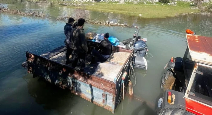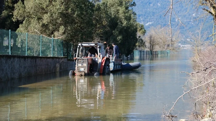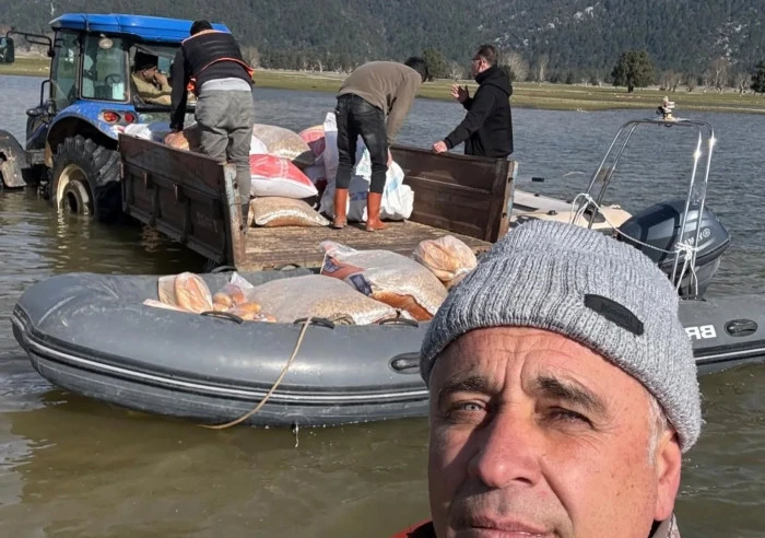 Göle dönen ovada mahsur kalan hayvanlara traktör ve su ulaşım araçlarıyla yem desteğinin ulaştırıldığı bildirildi.
