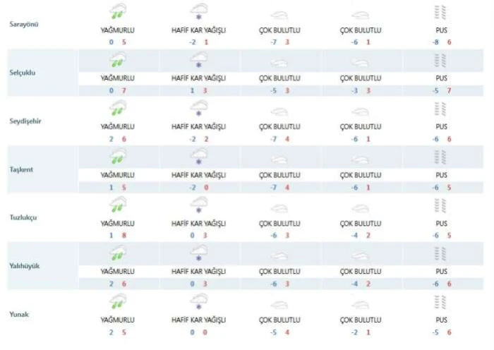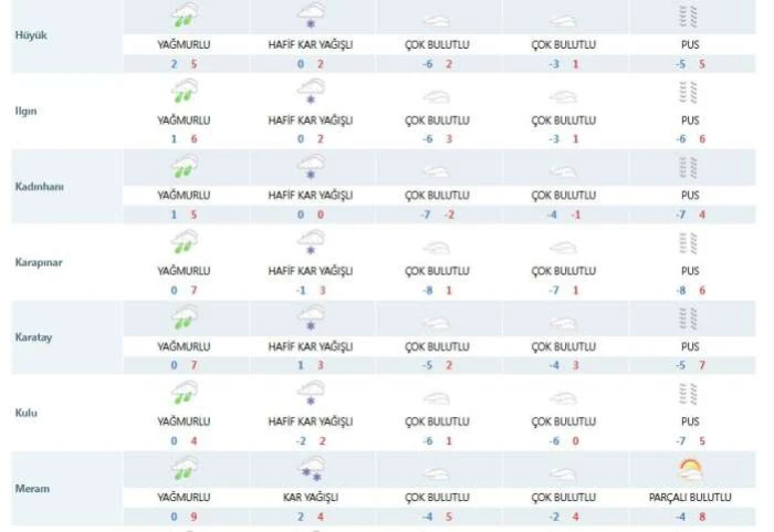 Konya ve ilçelerini hafif yağış ve dondurucu soğuğun etkili olacağı günler bekliyor.