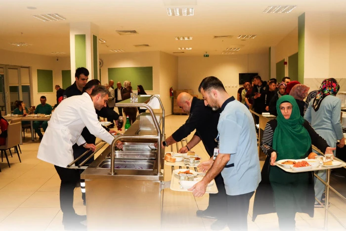 Hastane yemekhanesinde düzenlenen programa, hastane yöneticileri ile nöbet görevini sürdüren sağlık personeli katıldı. Aynı sofrada buluşan sağlık çalışanları, Ramazan’ın manevi atmosferini birlikte paylaştı.