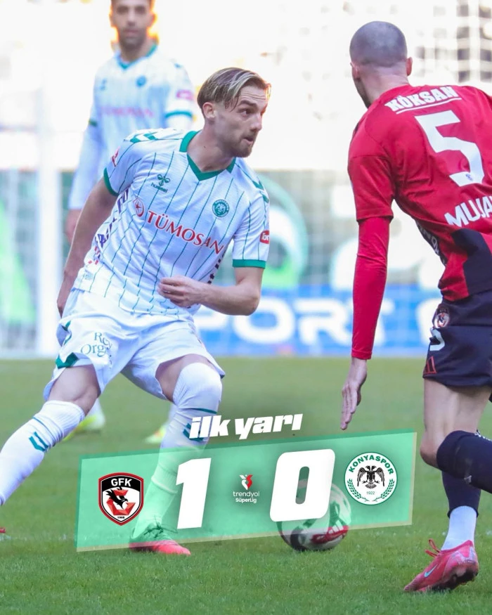 Gaziantep Büyükşehir Belediye Stadyumu’nda oynanan mücadelede ev sahibi ekip, ilk yarının uzatma dakikalarında Sorescu’nun golüyle öne geçti. Konyaspor, bu golle birlikte soyunma odasına 1-0 geride girdi.